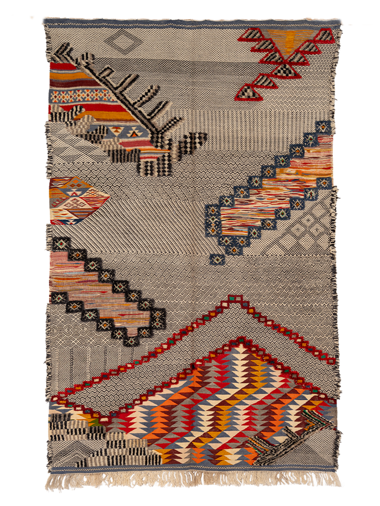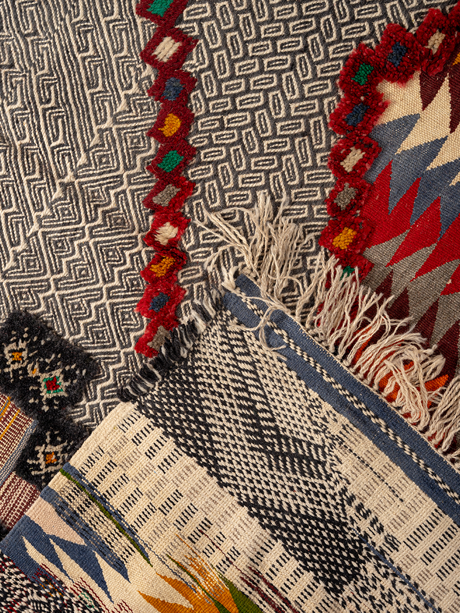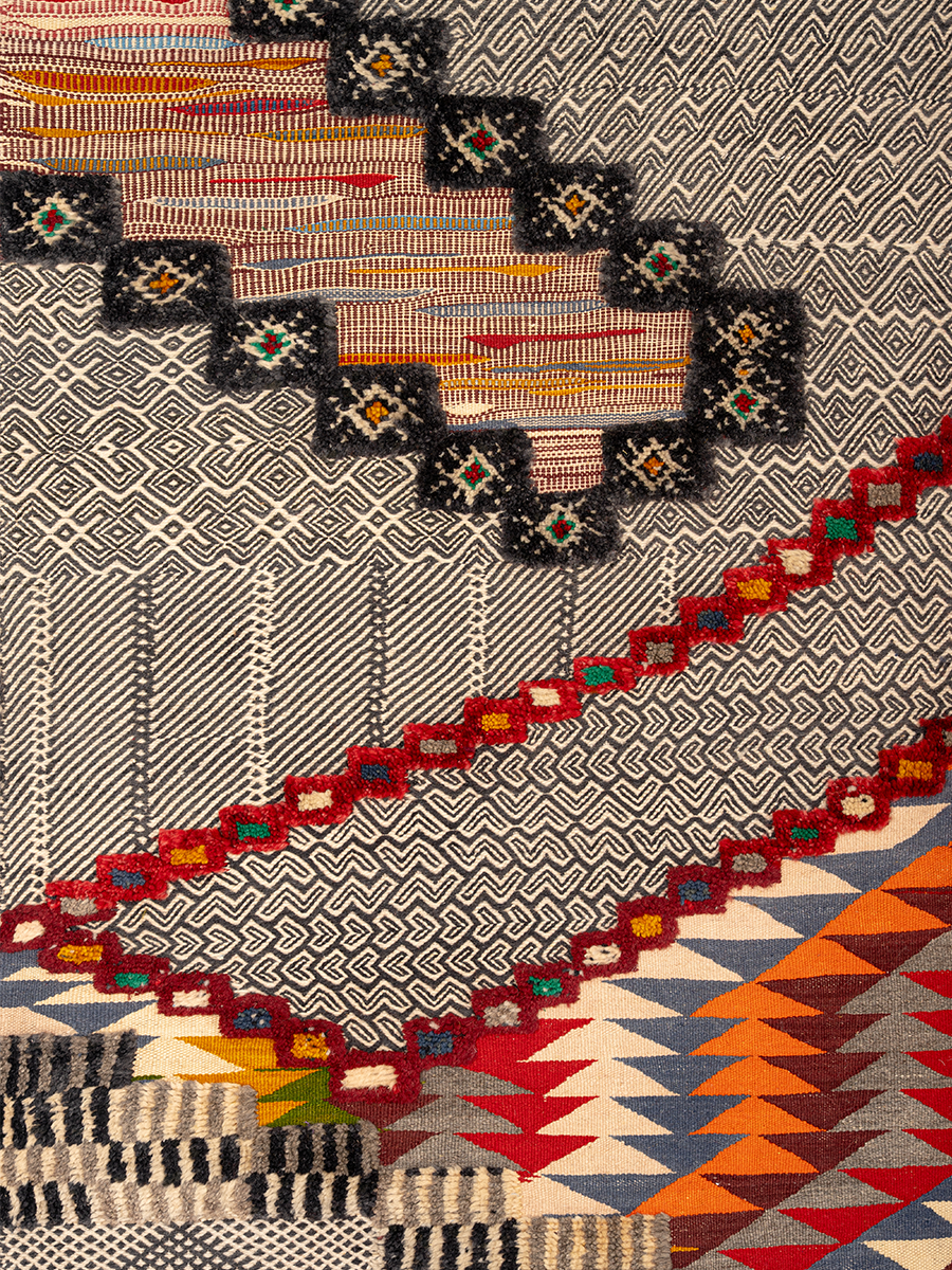 Glaoui is an extremely technical weave as it incorporates three techniques: Flatweave, Hand-Knot and Embroidery.